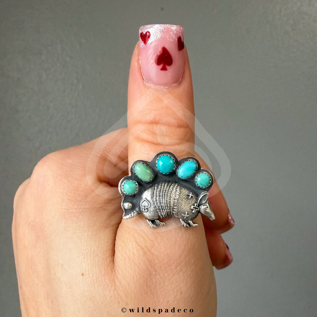 EXCLUSIVE Wild Spade Armadillo Ring with Mixed Turquoise • turquoise has natural veining