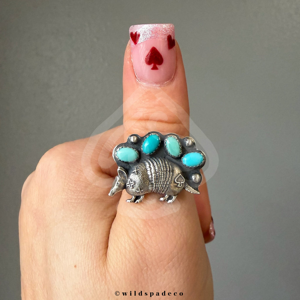 EXCLUSIVE Wild Spade Armadillo Ring with Mixed Turquoise • turquoise has natural veining